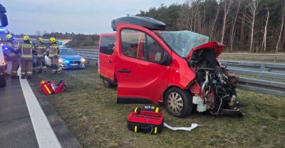 Na drodze ekspresowej S8 w Mogilnie Dużym Renault uderzyło w ciężarówkę. Cztery osoby z osobowego samochodu trafiły do szpitali. Policja wyjaśnia...